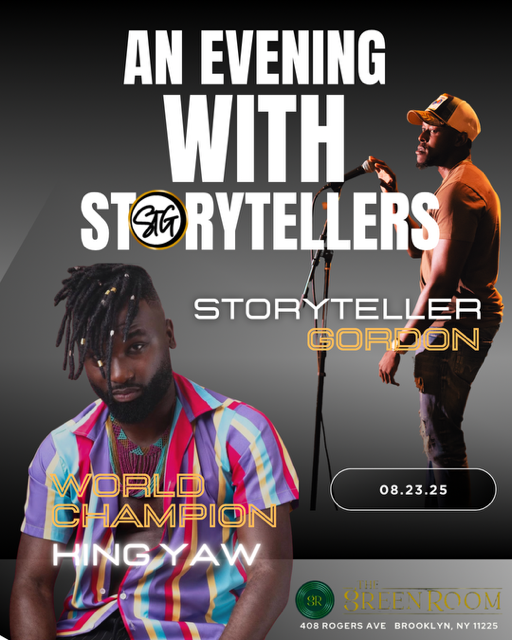 Story Teller Gordon is a writer, and spoken word artist from Brooklyn, NY. He has featured for notable platforms such as Poetry Me Please, Voices in Power, The Rose Garden and several others and has worked with corporate brands such as TVOne, Bronx Museum of Art, Microsoft and Dove Men. He has recently published his first poetry collection entitled Don’t Speak For Me and since then performed on Stages like the Apollo and recently alongside Emmy Nominated Comedian Josh Johnson.